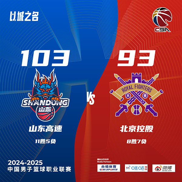 24直播网讯北京时间12月11日中国男子篮球职业联赛 常规赛,山东高速对阵北京控股。半场山东52-64北控,最终山东103-93北控。山东高速马基斯-克里斯40分10板1助,高诗岩20分5板7助;北京控股特拉维斯19分3板5助,朱松玮16分1板。