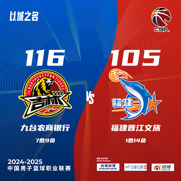 24直播网讯北京时间12月11日讯 CBA常规赛,吉林对阵福建,吉林上场比赛力克山东,福建则是6连败在联赛垫底。开场后吉林多点开花取得领先,高登带领福建紧追不舍,吉林依靠反击扩大优势。曾凌铉和高登轮番砍分掀起反扑,吉林外线手感火热连续用三分回应。第二节两队命中率都有下降,不过吉林在双外援的带领下将分差拉大,崔晋铭和贾昊状态不错连连拿分。易边再战,基兹林克和贾昊依旧手感火热连中三分,虽然福建开始还能回应远投,但吉林外线手感太过火热不停投进三分,崔晋铭更是三节结束前连中压哨三分,三节过后吉林领先到28分。最后一节虽然福建一路追分,但无奈此前分差太多,最终吉林116-105大胜福建取得2连胜,福建遭遇7连败。