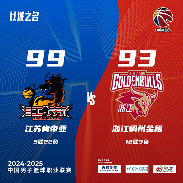 24直播网讯北京时间1月5日讯 CBA常规赛,江苏今日迎战浙江,前者上场比赛战胜广州,后者则是遭遇两连败,此役吴前、程帅澎和余嘉豪缺战。比赛上来,浙江就展示出了火热的进攻状态,一波15-4的开局迅速打停江苏,调整过后江苏并没有改变场上局势,他们单节只拿到18分,次节浙江命中率出现下滑,江苏这边刘泽希单节独得11分带队追分,半场结束时分差还剩8分;下半场回来,江苏继续追分,并利用一波9-0的小高潮成功实现反超,之后两队开始保持拉锯,关键时刻江苏直接打出一波9-0杀死比赛,最终江苏力克浙江迎来赛季首次连胜。