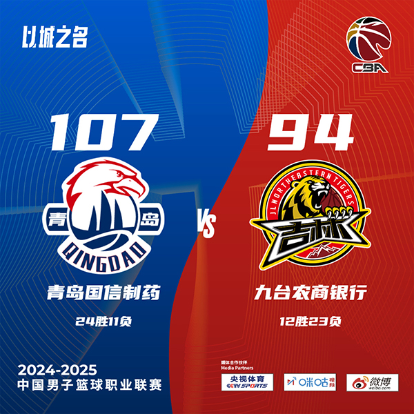 24直播网讯 北京时间1月25日讯 CBA常规赛,青岛今日迎战吉林,前者上场比赛战胜四川,后者则是输给新疆。比赛上来,两队的进攻表现都不太好,半节时间得分均未上双,不过青岛随后在两分钟的时间里轰出一波11-0的小高潮拉开分差,首节末段到次节初,吉林连拿七分又追了回来,但随后他们就陷入到得分荒,青岛再打11-0建立起两位数的领先优势,半场结束时吉林落后13分;下半场回来,两队展开对攻,分差并没有发生太大变化,青岛始终握有十分以上的领先,末节吉林也没有再获得任何机会,最终青岛轻取吉林迎来连胜。
