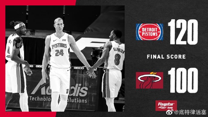 24直播网1月17日讯 热火坐镇主场迎战活塞,此役巴特勒、希罗因健康协议缺阵。两队上半场打得十分胶着,热火凭借纳恩和阿德巴约在次节末连续得分,以56-52稍稍领先结束半场。易边再战,热火在第三节命中率下滑,活塞则找到外线手感,格兰特、格里芬和罗斯等连中三分,活塞凭借凶猛的外线火力单节净胜19分,取得两位数领先。末节热火仍未找回进攻节奏,而活塞延续着手感,罗斯、约什-杰克逊和贝等一众替补再轰进三分,帮助活塞把领先扩大到20分以上,就此锁定胜局。最终,活塞在客场以120-100大胜热火,止住2连败的颓势,同时送给热火3连败。