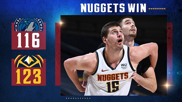 24直播网1月5日讯 掘金坐镇主场迎战森林狼,此役唐斯继续因伤缺阵。首节穆雷和约基奇里突外投频频得手,两人率领掘金打出高潮建立起两位数领先。但森林狼在次节找到手感,掘金旧将埃尔南戈麦斯联手拉塞尔命中5记三分,帮助森林狼打出一波21-4的攻击波,在半场结束以65-62反超比分。易边再战,两队打得十分胶着,不过掘金末节在约基奇带领下重新拉开比分。最终,掘金以123-116击败森林狼,取得2连胜,同时送给森林狼5连败。