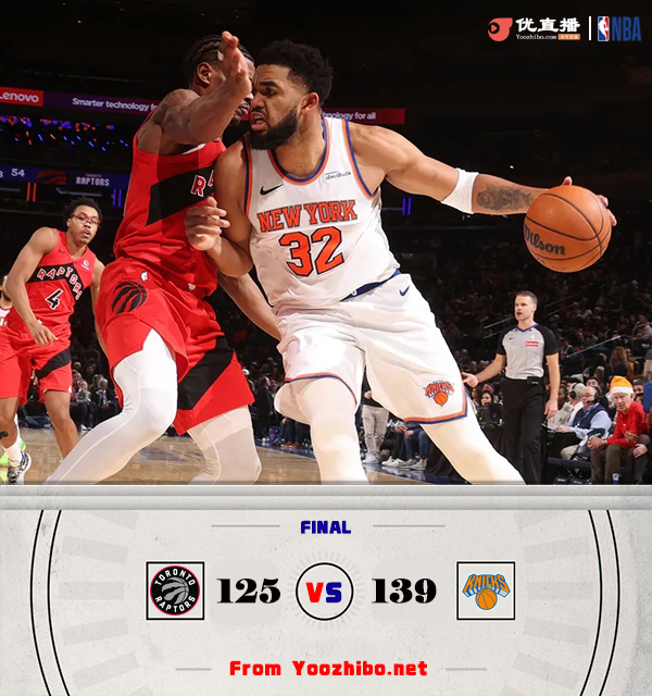 24直播网讯北京时间12月24日讯 NBA常规赛,尼克斯今日迎战猛龙,前者近来取得三连胜,后者则是惨遭七连败,此役奎克利和珀尔特尔缺战。比赛上来,两队就打得十分胶着,猛龙打得积极主动完全不落下风,整个第一节分差最大只有四分,次节尼克斯终于打开局面,他们轰出一波15-2的攻势将分差拉开到两位数,单节更是砍下40分,半场结束时猛龙已经落后18分;下半场回来,猛龙进攻有所好转但依旧无法限制对手的攻势,分差一度突破了三十分,比赛到末节已经早早失去悬念,最终尼克斯轻取猛龙,迎来四连胜的同时也送给后者八连败。