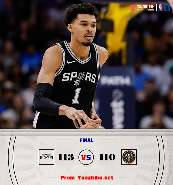 24直播网讯北京时间1月4日讯 NBA常规赛今日继续开打,掘金今日坐镇主场迎战马刺,这场比赛是双方两天背靠背二番战里的首场对决。首节之争两支球队状态相当都无法阻止对手抢分,约基奇和文班亚马的对决成为焦点也帮助各自球队抢分,马刺开局率先发难短时间内拉开8分优势,但末段掘金轰出连续三记三分又迅速扭转局面;次节双方继续对攻僵持,约基奇和文班亚马两人都在上半场就拿到两双数据,不过文班亚马的表现稍胜一筹也成功帮助到球队,他先是两记三分拉开比分,末段又连续篮下抢分帮助球队拿到8分优势进入下半场。休息归来掘金迅速进入状态送出16-4的攻势追上比分开启拉锯,末节最后时刻简直神仙交手交替抢分多次互换领先,最后时刻马刺犯下大错给了掘金绝杀球权,不过最后时刻约基奇也犯错,文班亚马抢断杀死比赛。最终,马刺力克掘金拿下比赛。