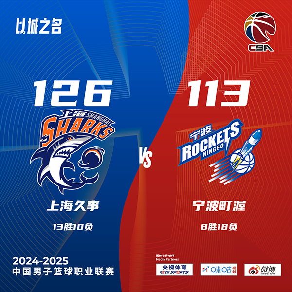 24直播网讯北京时间1月4日讯 CBA常规赛,上海主场迎战宁波,上海目前11连胜,12胜10负升至积分榜第13位,宁波则是8胜17负排在第15位。比赛开始,双方迅速进入状态,王哲林接连内线强打得分上双,而宁波则是靠外援撑起球队进攻,还命中很多高难度进球,首节上海领先4分,次节上海7-0后一度领先到双位数,随后宁波持续发力回应14-3攻击波反超比分,随后上海再回应11-2小高潮半场领先6分。下半场,双方展开拉锯战,李弘权里突外投连砍8分,上海顺势打出16-1超级攻击波拉开双位数领先,宁波接连三分止血追分,三节上海领先2分,末节李弘权又是接连三分,上海一波12-2重新拉开双位数领先,随后上海牢牢掌握住双位数领先,最终上海126-113力克宁波,豪取12连胜。