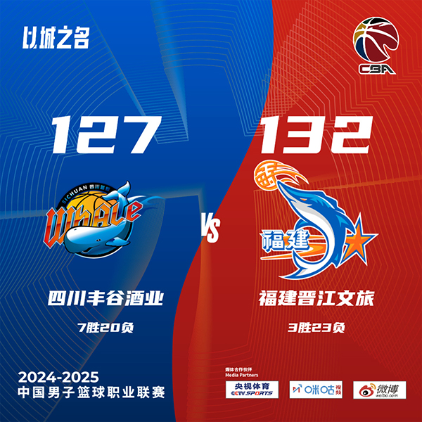 24直播网讯北京时间1月5日讯 CBA常规赛,四川主场迎战福建。四川7胜19负排在联赛倒数第五,福建2胜23负垫底。上半场,双方开场势均力敌,比分交替领先,萨姆纳火力全开单节独得21分,福建多点开花给出回应,次节双方继续缠斗,福建持续发力占据主动,半场战罢福建67-59领先四川。下半场,两队大举反击,多点开花迫近比分,末节萨姆纳三分带队反超,双方争夺陷入白热化,关键时刻王薪凯飙中三分,邹阳三分回应,王薪凯连续发球失误,约瑟夫-杨失绝杀,双方进入加时。加时赛,福建打出8-1确立优势,四川连投带罚扳平比分,曾凌铉三分命中,邹阳两罚都有,福建加时132-127力克四川。