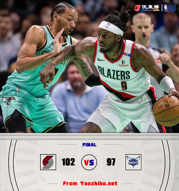 24直播网讯  北京时间1月25日讯 NBA常规赛,黄蜂主场迎战开拓者,黄蜂11胜29负东部第13位,开拓者最近3连胜后16胜28负西部第13位。本场比赛,黄蜂三球和布里奇斯、小库里等球员不打,开拓者艾顿也缺阵。比赛开始,克林根内线连续送出盖帽,但黄蜂外线突然开火连中4记三分,轰出16-0直接建立双位数领先,西蒙斯接连三分追到差8分,次节黄蜂7-2再次领先到双位数,但格兰特接连三分单节轰下13分一度带队追平比分,半场黄蜂还领先4分。下半场,开拓者上来11-0一度反超比分,随后双方都犯满后频繁走上罚球线,三节黄蜂只领先2分,末节双方继续胶着,西蒙斯接连中远投带队7-0建立领先,随后开拓者保持住两球以上领先,格兰特中投杀死比赛,最终开拓者102-97力克黄蜂,拿到4连胜。