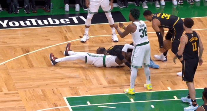 本场比赛,格林多次逃过裁判的吹罚,比如故意压杰伦-布朗,故意抱摔塔图姆等等;格林全场正负值-13,