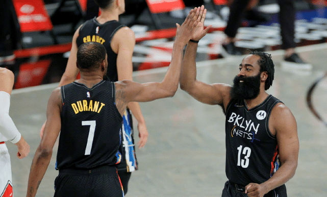 说完西部夺冠热门,我们再来说说东部夺冠热门——篮网队,今天是篮网队的大日子,自打整齐了三巨头之后,这哥三一共一起打了7场比赛,战绩是5胜2负,随着季后赛来临,磨合成为了他们最大的隐患。