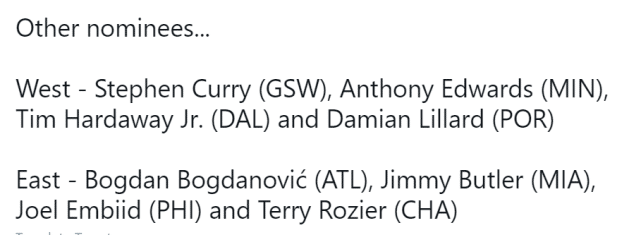 过去一周,博格达诺维奇场均贡献29.3分4.5篮板1.5助攻,投篮命中率62.3%,三分命中率53.8%,帮助爵士取得4胜0负的佳绩。这是博格达诺维奇生涯第二次获得周最佳的荣誉,他在2019年2月曾经拿到过一次周最佳。