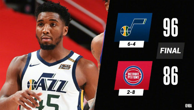 爵士96-86力克活塞 米切尔28分 康利22+5+6