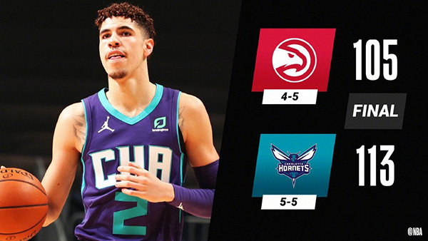 24直播网讯:北京时间1月10日,2020-21赛季NBA常规赛继续进行,黄蜂队在主场迎战老鹰队。最终,黄蜂队以113-105战胜老鹰队。