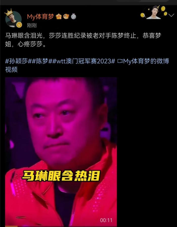 马琳会如此举动,更多的原因是他理解这两年来陈梦的压力有多大,他也知道陈梦需要一场决赛去争夺一个女单冠军来缓解压力,可是马琳却忘记了一件事情,如果他还是陈梦的主管教练,马琳别说双眼含泪了,即便是大哭也没有人会说他什么,可是如今的马琳是女队的教练,这样的做法和行为对于孙颖莎绝对是不公平,所以马琳被骂也是应该,马琳也应该好好反省,好好适应自己的角色了。