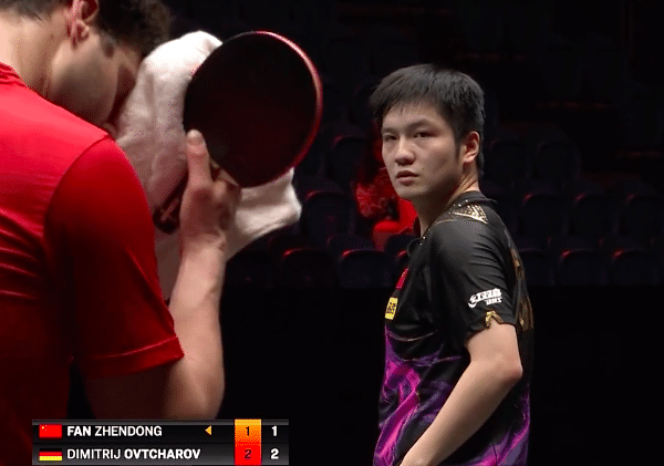 比赛开始后,一切也都是按照球迷的预料走的,樊振东11::4拿下了首局的胜利,可是随后场面却突然发生了巨大的转变,樊振东这边竟然连续输掉2局,奥恰拿到了赛点。关键的第四局,樊振东挺住了,他把比赛拖到了决胜局,可是在决胜局中,樊振东似乎并不在自己的状态,比赛中樊振东频繁的揉自己的膝盖,最终樊振东在最后一局6:11输给了奥恰,大比分2:3被爆冷出局,无缘四强。