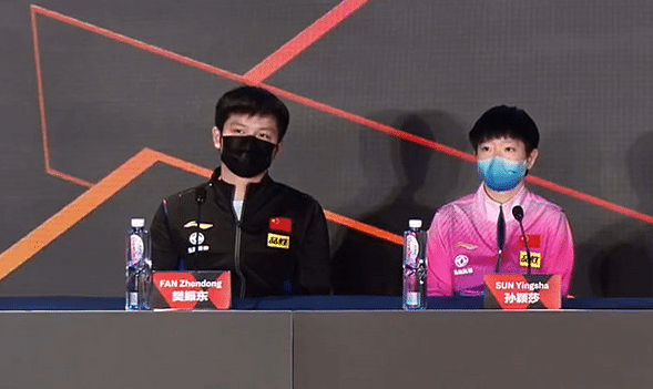 之后抽签的孙颖莎也被问到了同样的问题,她的言论是:”我跟樊振东一样,我也每场比赛都想看。“