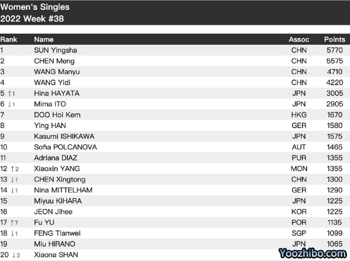 24直播网09月20日,国际乒联第38周世界排名出炉,因为上周有成都团体世乒赛前的最后一站WTT赛事阿拉木图站的比赛,所以排名发生了一些变化。女单夺冠的早田希娜反超国家队队友伊藤美诚,升至女单前五,成为日本女单排名最高的选手。男单夺冠的菲鲁斯本周世界排名将上升到第21位,表现强势。