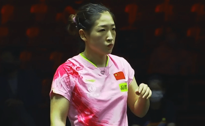 第一局的比赛开始,孙颖莎8:3的领先,中局过后,刘诗雯被孙颖莎限制住了,孙颖莎主动上手失误,刘诗雯勾手发球,连续爆冲得分,多拍相持,反手对攻,孙颖莎得分,刘诗雯回球下网,11:5,孙颖莎拿下第一局,大比分1:0领先,由于是国乒内战,两人场边是没有教练的,所以只能靠自己去调整。