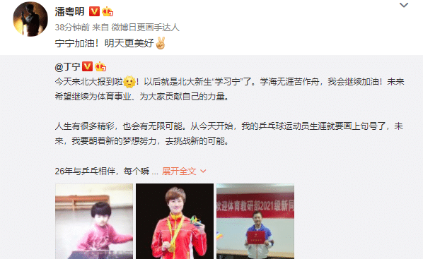 很快知名演员潘粤明在社交媒体上送出祝福,称:宁宁加油!明天更美好[耶]