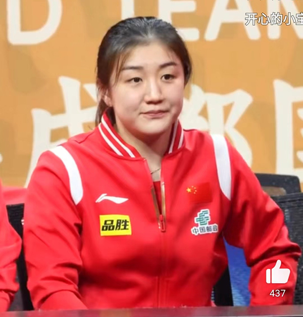 孙颖莎这边呢?孙颖莎无疑是观赛最认真的人,这或许和孙颖莎赛后总喜欢第一时间复盘比赛有关,在观赛的时候,孙颖莎时而眉头紧皱,时而欢呼,显然孙颖莎的代入感还是十足,或许在孙颖莎的脑海,她也在计算如果是自己该如何去破解这样的球。