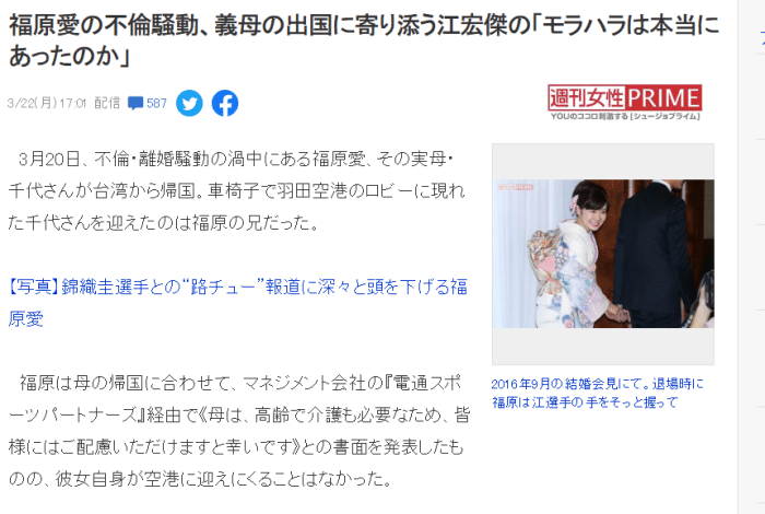 24直播网3月23日讯 ,日本媒体《女性周刊》发表一篇评论文章。文章的标题是:福原爱事件中,护送丈母娘回国的江宏杰真的有“情感暴力”吗?在文章中,作者为江宏杰“鸣冤”,称从种种迹象来看,江宏杰不太像会用言语暴力来对待福原爱的人。此外,作者也分析可能是异域的生活,以及对于婚姻太理想化,让福原爱的婚后生活并不甜蜜。
