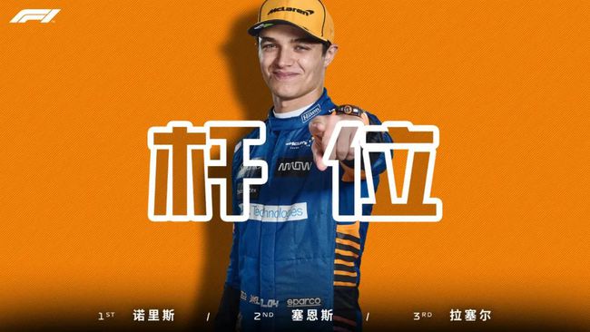 最终Q3停表,诺里斯凭借自己出色的发挥,以1:41.993的成绩拿下生涯首个杆位!塞恩斯第二,落后0.517秒,拉塞尔又一次在雨天中表现出色,最终排在第三。汉密尔顿在最后的计时圈中出现失误,最终只排在第四,里卡多第五。第六至第十位的车手是阿隆索、博塔斯、斯托尔、佩雷兹和奥康。
