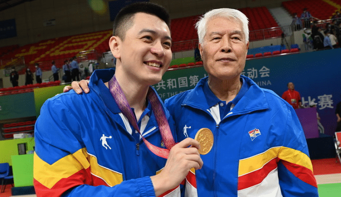 24直播网9月27日讯 全运会U22男篮决赛是压轴项目之一,最终在辽粤巅峰对决中,辽宁男篮笑到了最后,依靠着郭艾伦等人的出色发挥,辽宁男篮成功击败广东,卫冕全运会金牌,广东队获得银牌,浙江队获得第三名。颁奖仪式上,杨鸣将自己的金牌给蒋兴权指导戴上,非常地有爱。辽宁队在本届全运会上拿下5战全胜的完美战绩,淘汰赛更是击败了浙江和广东两大强队,冠军含金量十足。